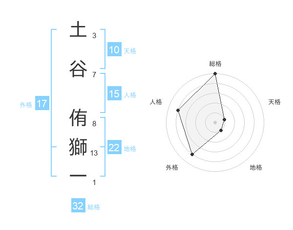 土谷 侑獅一さんの総格は32画の5点!
