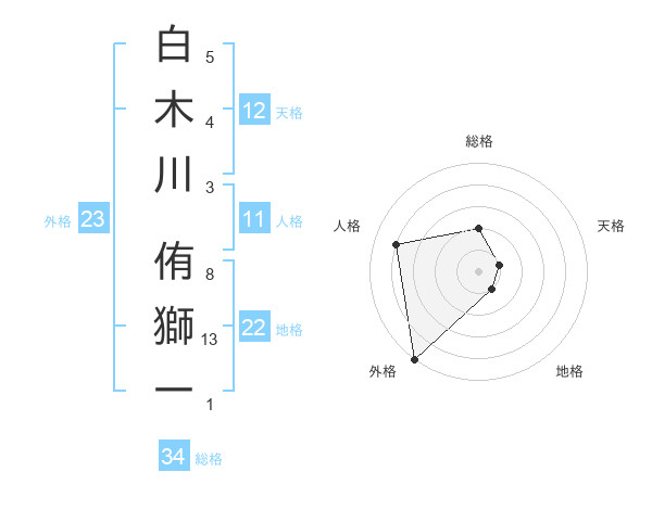 白木川 侑獅一さんの外格は23画の5点!