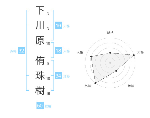 下川原 侑珠樹さんを姓名の画数から五運を鑑定