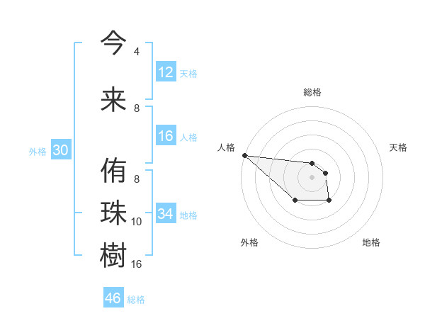今来 侑珠樹さんを姓名の画数から五運を鑑定