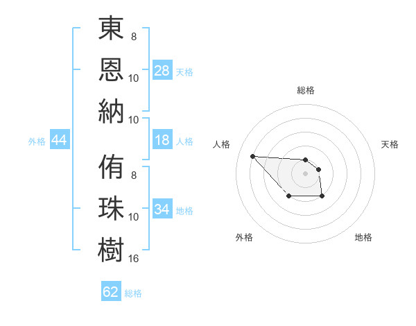 東恩納 侑珠樹さんの外格は44画の2点!