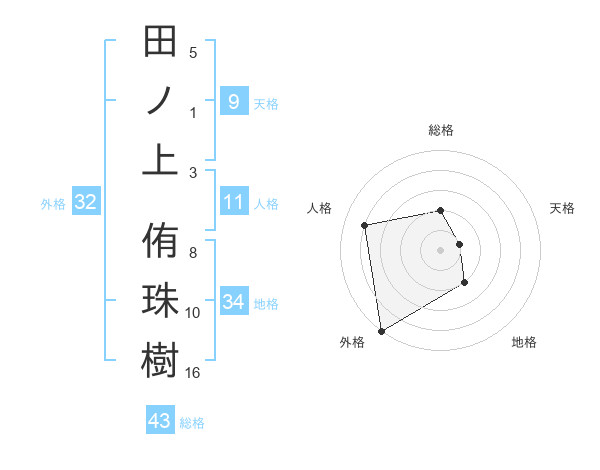 田ノ上 侑珠樹さんの外格は32画の5点!