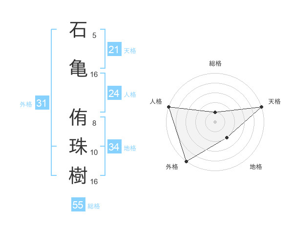 石亀 侑珠樹さんを姓名の画数から五運を鑑定
