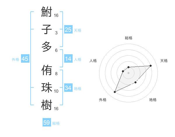 鮒子多 侑珠樹さんの外格は45画の4点!