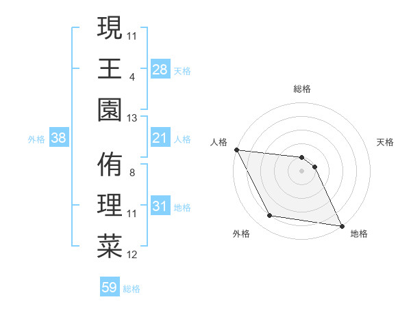 現王園 侑理菜さんを姓名の画数から五運を鑑定