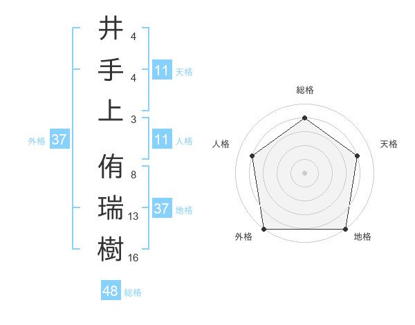 井手上 侑瑞樹さんの天格は11画の4点