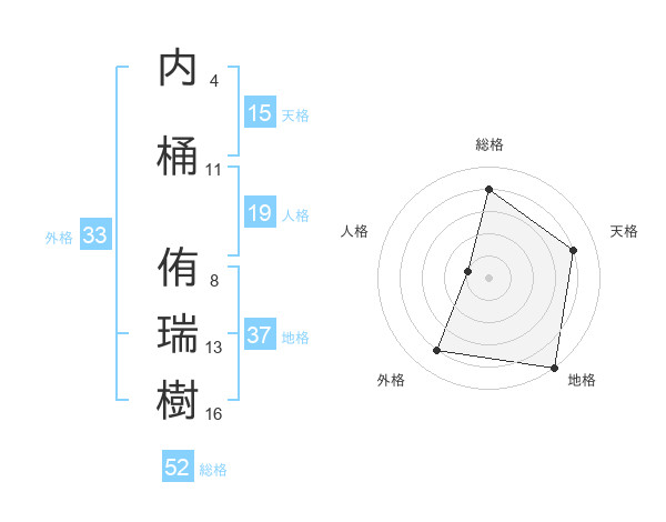 内桶 侑瑞樹さんの地格は37画の5点!