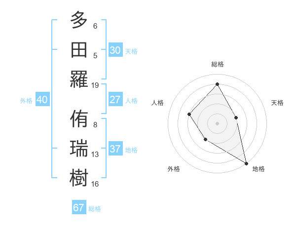 多田羅 侑瑞樹さんの地格は37画の5点!