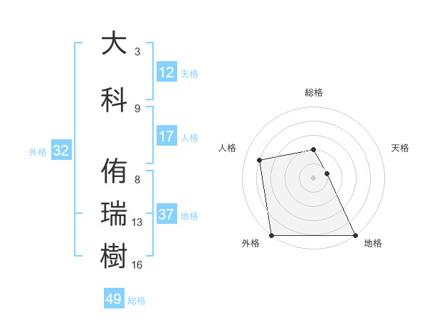 大科 侑瑞樹さんを姓名の画数から五運を鑑定