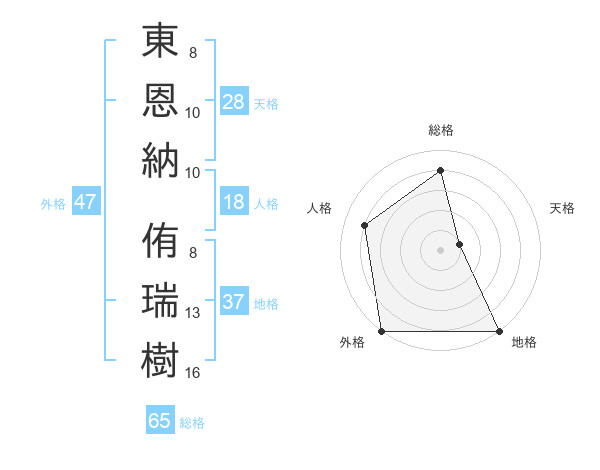 東恩納 侑瑞樹さんの外格は47画の5点!