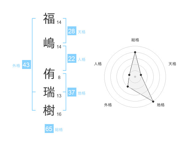 福嶋 侑瑞樹さんの地格は37画の5点!