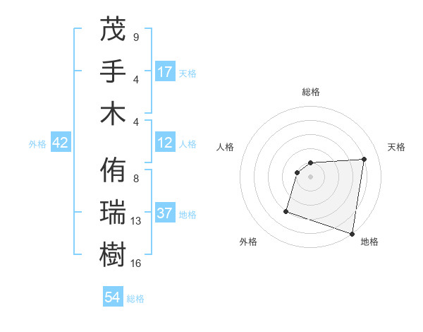茂手木 侑瑞樹さんの天格は17画の4点!