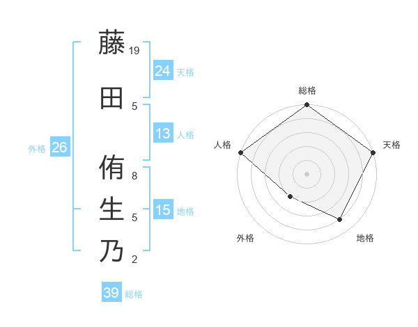 藤田 侑生乃さんの天格は24画の5点