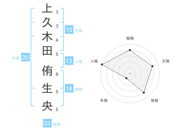上久木田 侑生央さんを姓名の画数から五運を鑑定