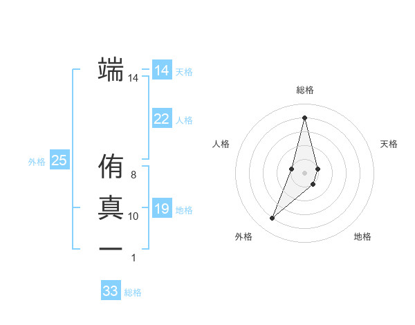 端 侑真ーさんの地格は19画の1点!