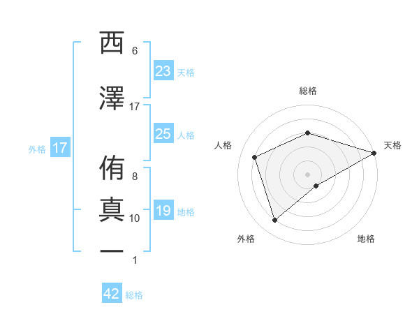 西澤 侑真ーさんの天格は23画の5点!