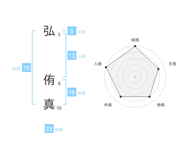 弘 侑真さんの総格は23画の5点!
