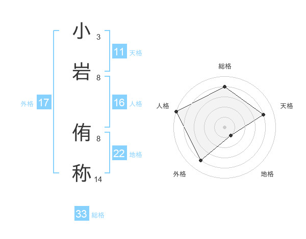 小岩 侑称さんの総格は33画の4点!