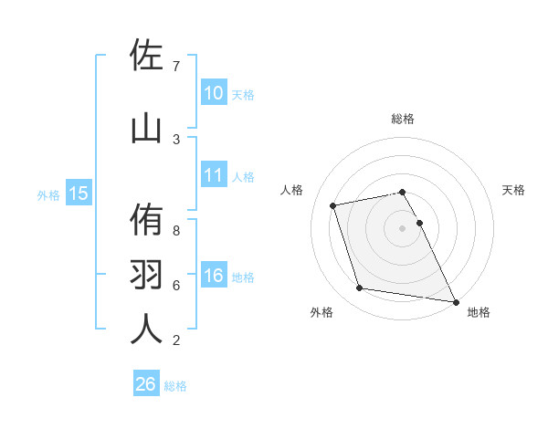 佐山 侑羽人さんを姓名の画数から五運を鑑定