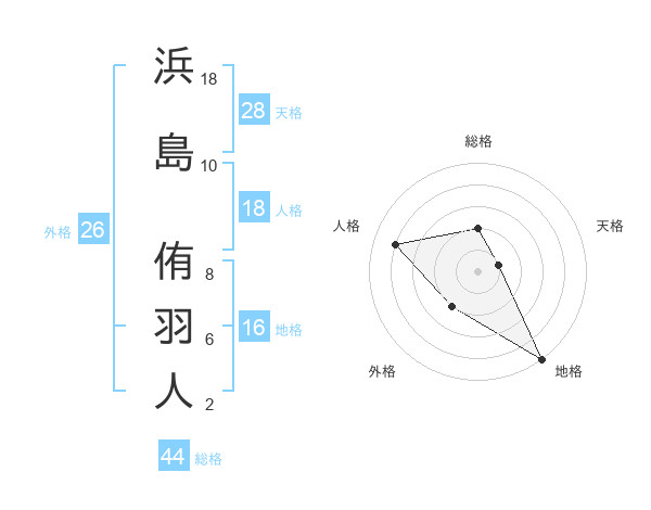 浜島 侑羽人さんを姓名の画数から五運を鑑定