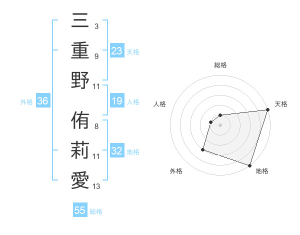 三重野 侑莉愛さんを姓名の画数から五運を鑑定