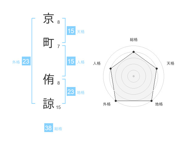 京町 侑諒さんの総格は38画の4点!