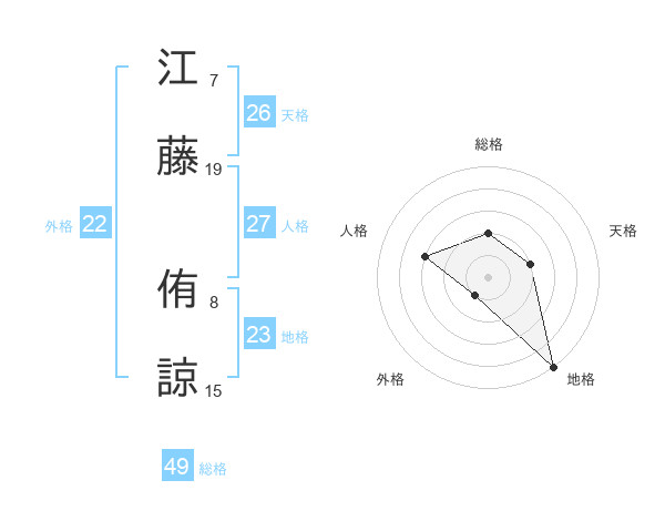 江藤 侑諒さんの総格は49画の2点!