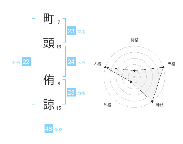 町頭 侑諒さんの地格は23画の5点!