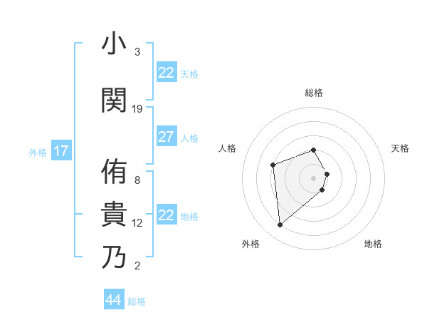 小関 侑貴乃さんを姓名の画数から五運を鑑定