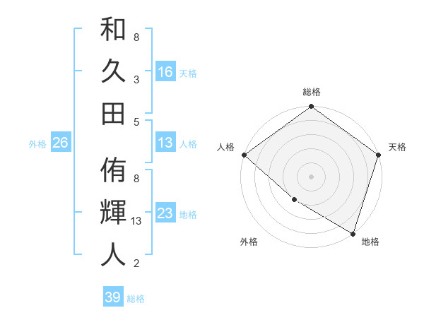 和久田 侑輝人さんの総格は39画の5点!