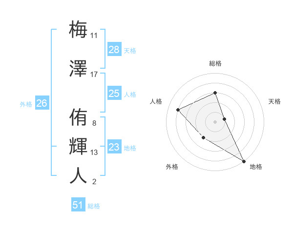 梅澤 侑輝人さんを姓名の画数から五運を鑑定