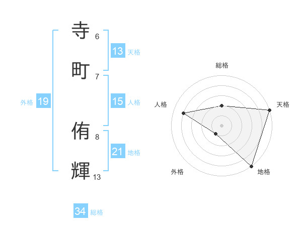 寺町 侑輝さんの天格は13画の5点!