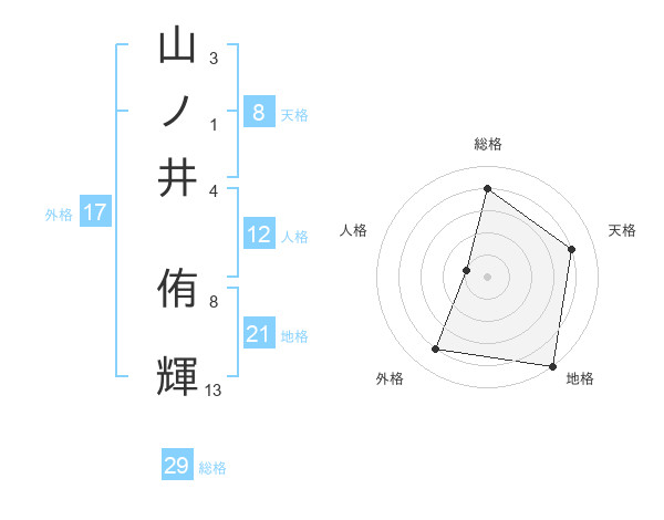 山ノ井 侑輝さんの総格は29画の4点!