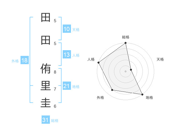 田田 侑里圭さんを姓名の画数から五運を鑑定