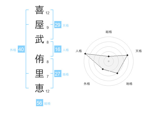 喜屋武 侑里恵さんを姓名の画数から五運を鑑定