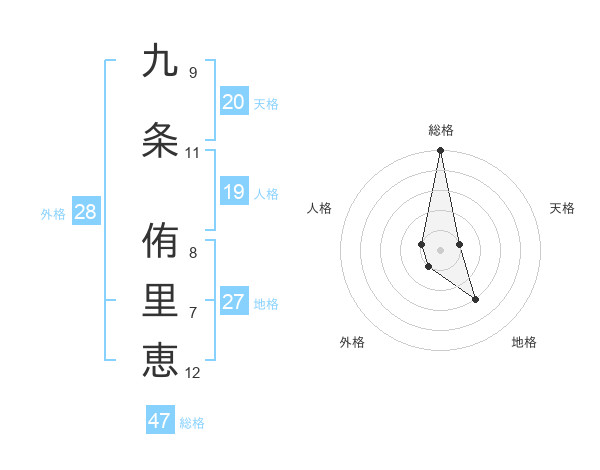九条 侑里恵さんを姓名の画数から五運を鑑定
