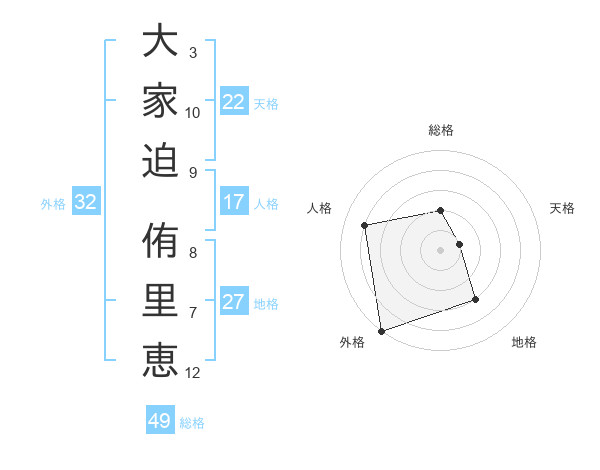 大家迫 侑里恵さんの外格は32画の5点!