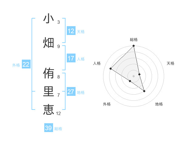 小畑 侑里恵さんを姓名の画数から五運を鑑定