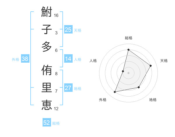 鮒子多 侑里恵さんの外格は38画の4点!