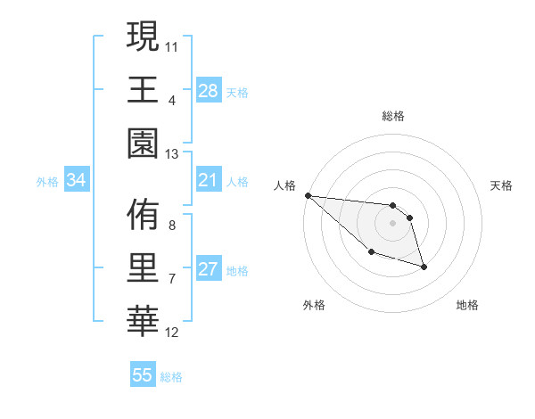 現王園 侑里華さんを姓名の画数から五運を鑑定