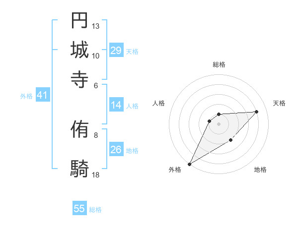 円城寺 侑騎さんの総格は55画の1点!