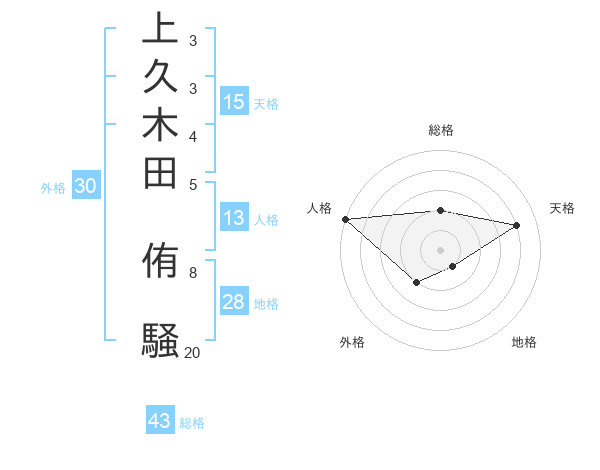 上久木田 侑騒さんを姓名の画数から五運を鑑定