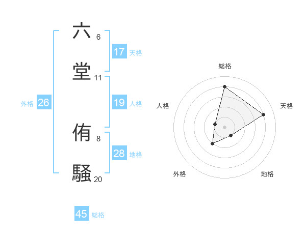 六堂 侑騒さんの総格は45画の4点!