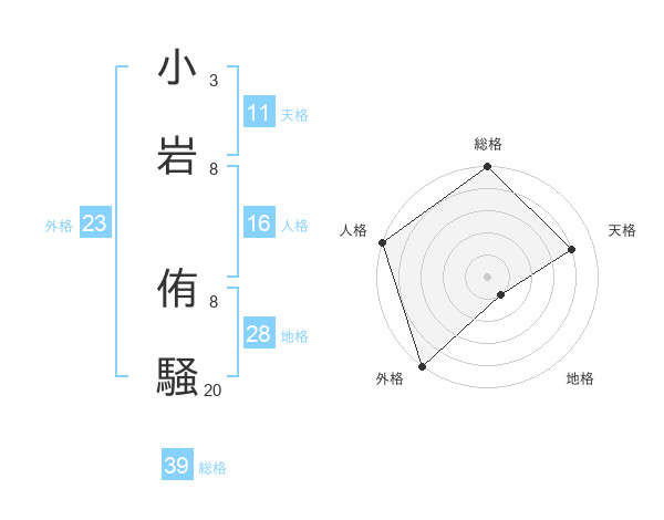 小岩 侑騒さんを姓名の画数から五運を鑑定