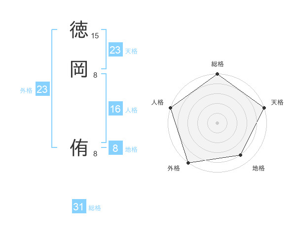 徳岡 侑さんの天格は23画の5点!
