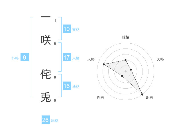 一咲 侘兎さんを姓名の画数から五運を鑑定