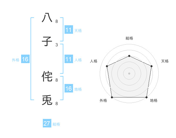 八子 侘兎さんの外格は16画の5点!