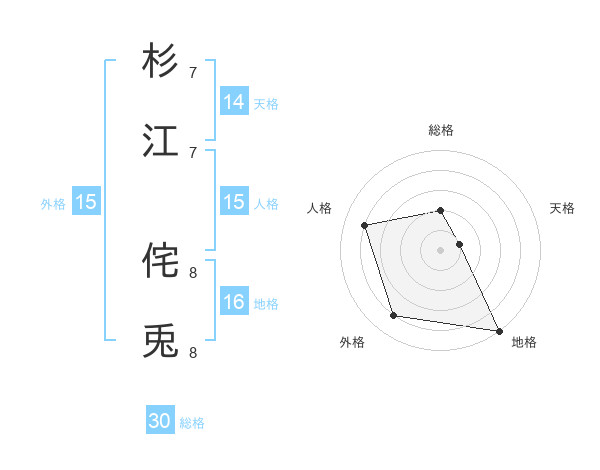 杉江 侘兎さんの総格は30画の2点!