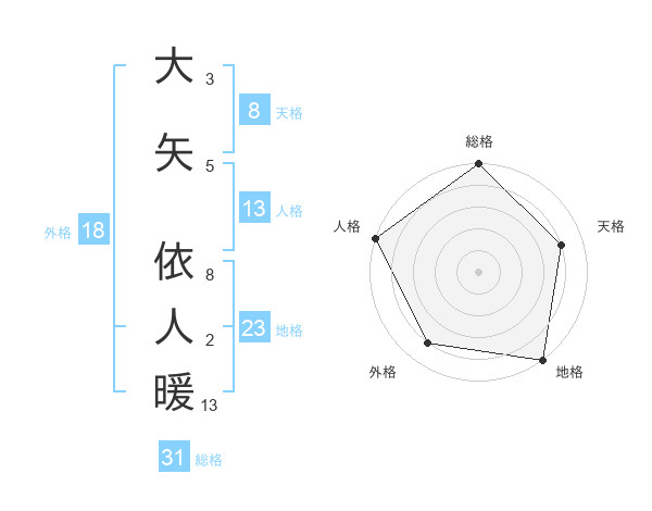 大矢 依人暖さんを姓名の画数から五運を鑑定