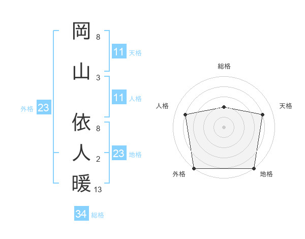 岡山 依人暖さんを姓名の画数から五運を鑑定